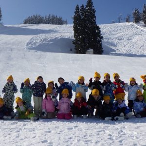 スキーが初めてでも大丈夫!直滑降から止まれる事を目標に段階を追って丁寧に楽しく講習します。スキーの技術向上と同時に楽しみながら集団生活を過ごします。
