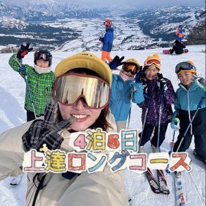当社自慢のおすすめコースです。特にリフト1日券を5日間購入し、スキーレベルに応じて、できるだけたくさんリフトを利用する講習は満足です。リフト券代は、参加費に含まれていますので、他のスキー教室で見られる参加費以外での請求はありませんので割安です。また、旅館は長年のお付き合いもあり、様々な面でとてもよくしていただき快適な5日間です。特に自慢の自家製コシヒカリとおいしい料理は、最高です。小学生から高校生まで幅広い年齢での5日間の合宿生活は、なかなか体験できないことも数多く楽しく有意義なものになります。